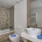 TV, 실내 온도 조절기뿐만 아니라 부엌도 있습니다. 숙소에는 또한 2개의 욕실이 있습니다. Apartment Estepona Roof Top View-2 By Interhome 아파트에는 2개 침실이 있습니다. 모든 욕실에는 욕조, 욕조, 샤워 제공됩니다.